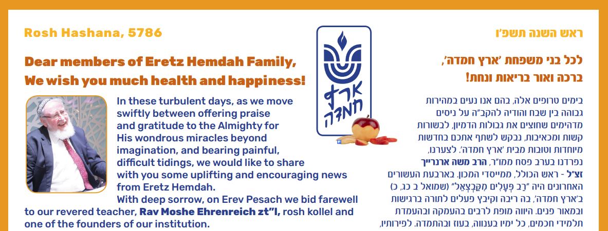 Good News from Eretz Hemdah |
